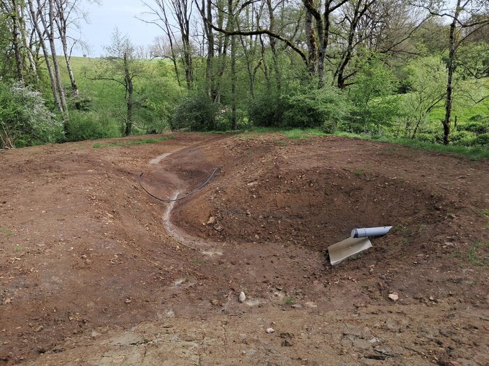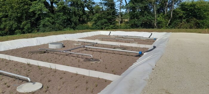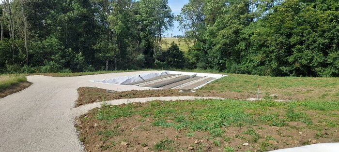 La pose des géomembranes est réalisée ainsi que le remplissage.